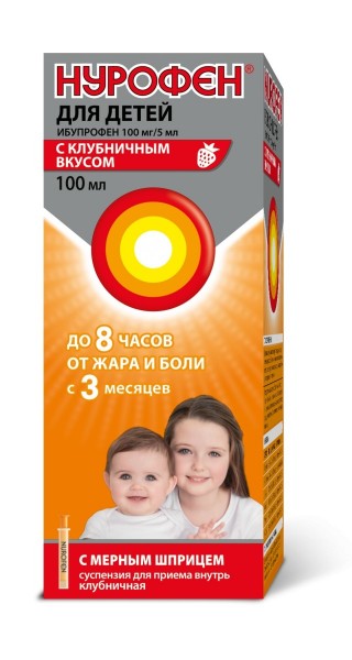 Нурофен для детей, суспензия для приема внутрь 100 мг/5 мл 100 мл 1 шт клубничная: Инструкция по применению